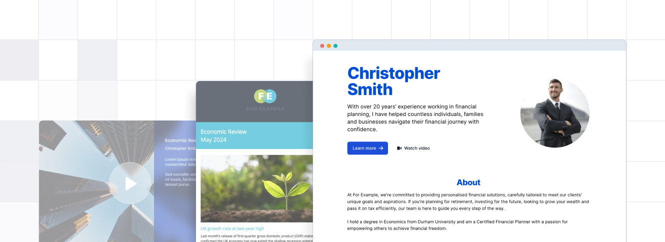 Instantly create impactful ad-hoc or regular marketing campaigns, web pages, HTML emails, adviser profiles and more.
